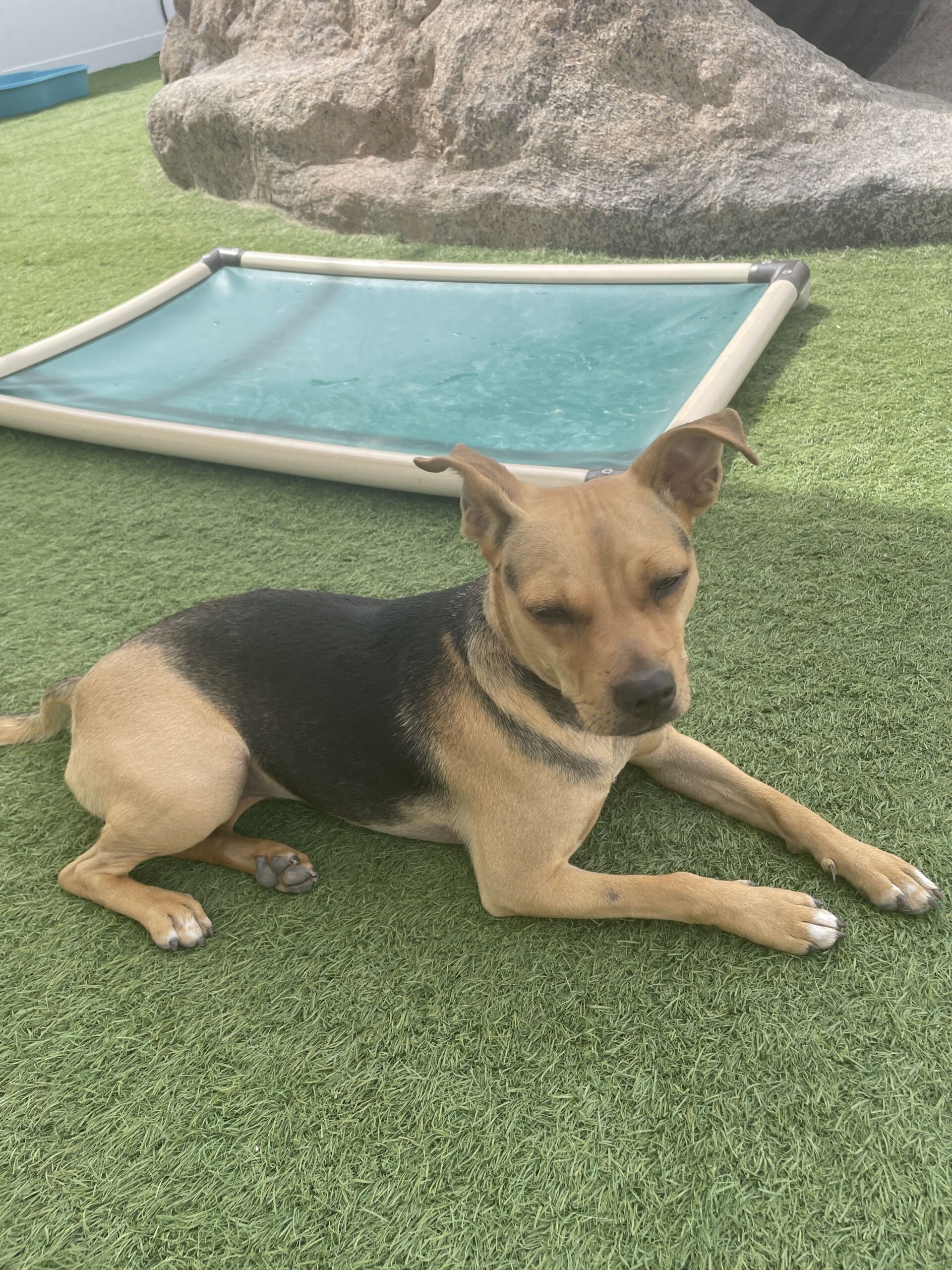 The award-winning Camp Run-A-Mutt™ is the premier cage-free dog daycare and boarding paradise! Our camp consists of beautiful indoor and outdoor play areas (see for yourself on our Muttcams), which are fun, safe and supervised 24/7. Camp Run-A-Mutt™ Henderson features over 9,000 square feet for your dog to romp, play and socialize to their heart’s content! Watch your camper online as they run on the spacious grassy area, cool off in the custom water feature, relax on dog-friendly furniture or under the shade sails on a hot day (or in our temperature-controlled indoor play areas during inclement weather).