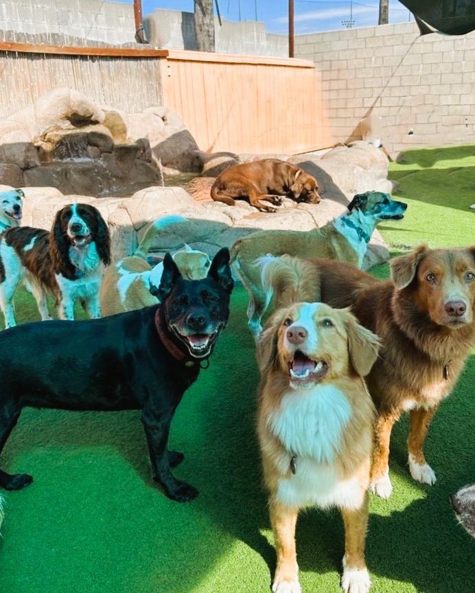 After passing their temperament test, your pup must complete at least one full daycare day (minimum 6 hours, $38) before booking overnight boarding. This helps us observe how they interact with the pack and settle into our environment—and helps them feel comfortable for sleepovers!